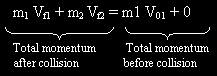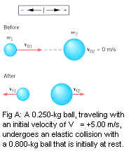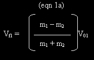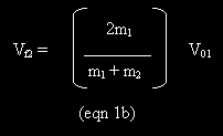 Solution: The equations above are simultaneous equations containing the two unknown quantities Vf1 and Vf2. To solve them, we begin by rearranging the equation expressing momentum conservation to show that Vf2 = m1(V01 – Vf1)/m2. Substituting this result into the equation expressing the conservation of kinetic energy leads to the following equation for Vf1: